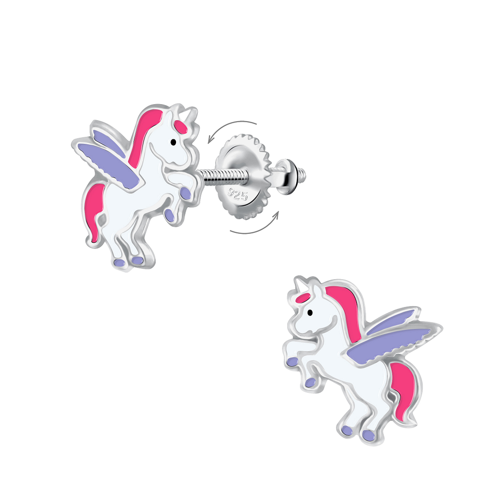 Sterling Silver Winged Unicorn Screw Back Ear Studs – JD24021