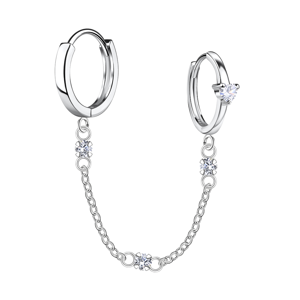 Sterling Silver Heart Double Huggie Earrings with Chain – JD22588
