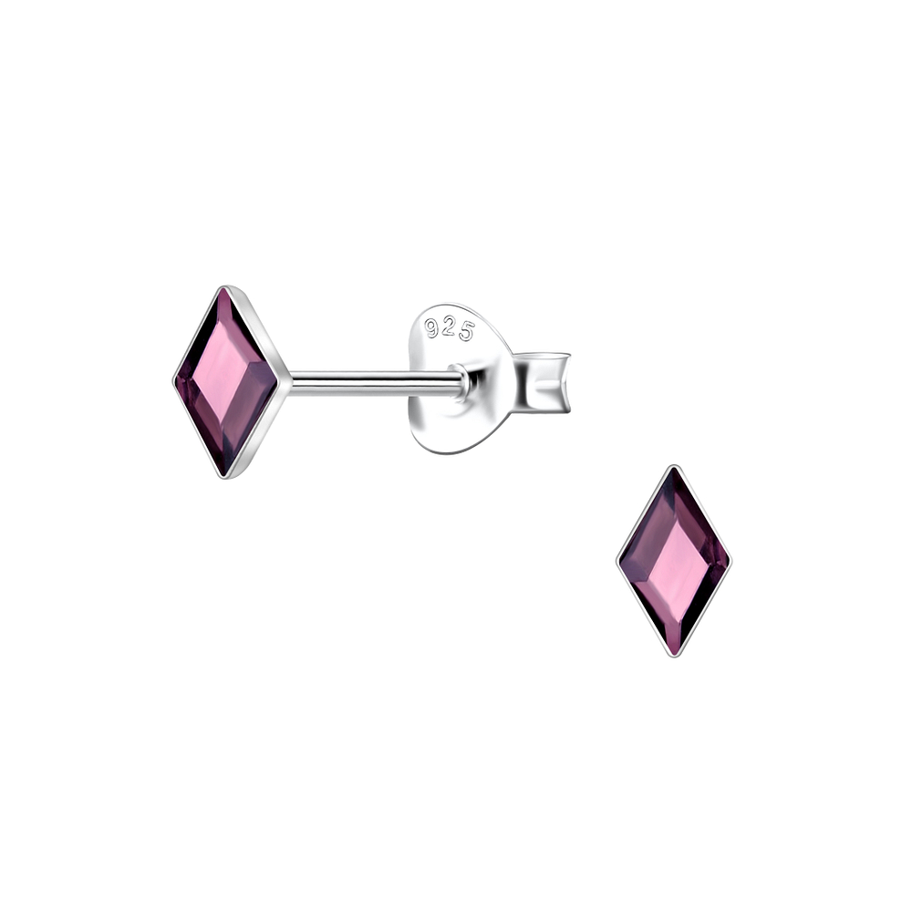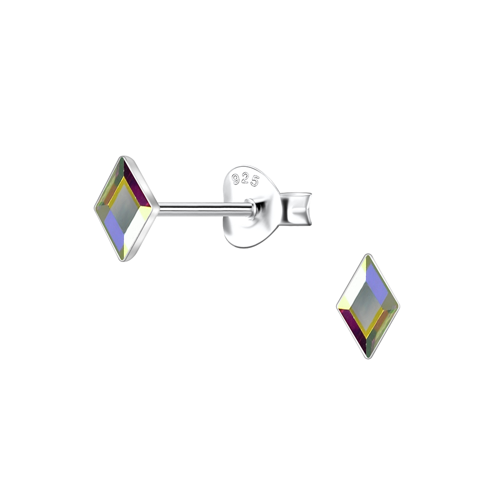 3x5mm Diamond Shaped Crystal Sterling Silver Ear Studs – JD24731