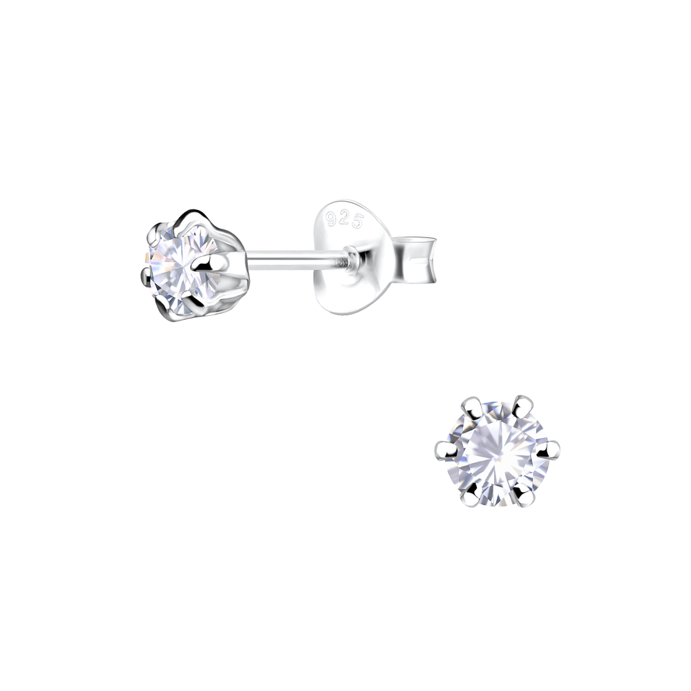 4mm Round Cubic Zirconia Sterling Silver Ear Studs – JD1976