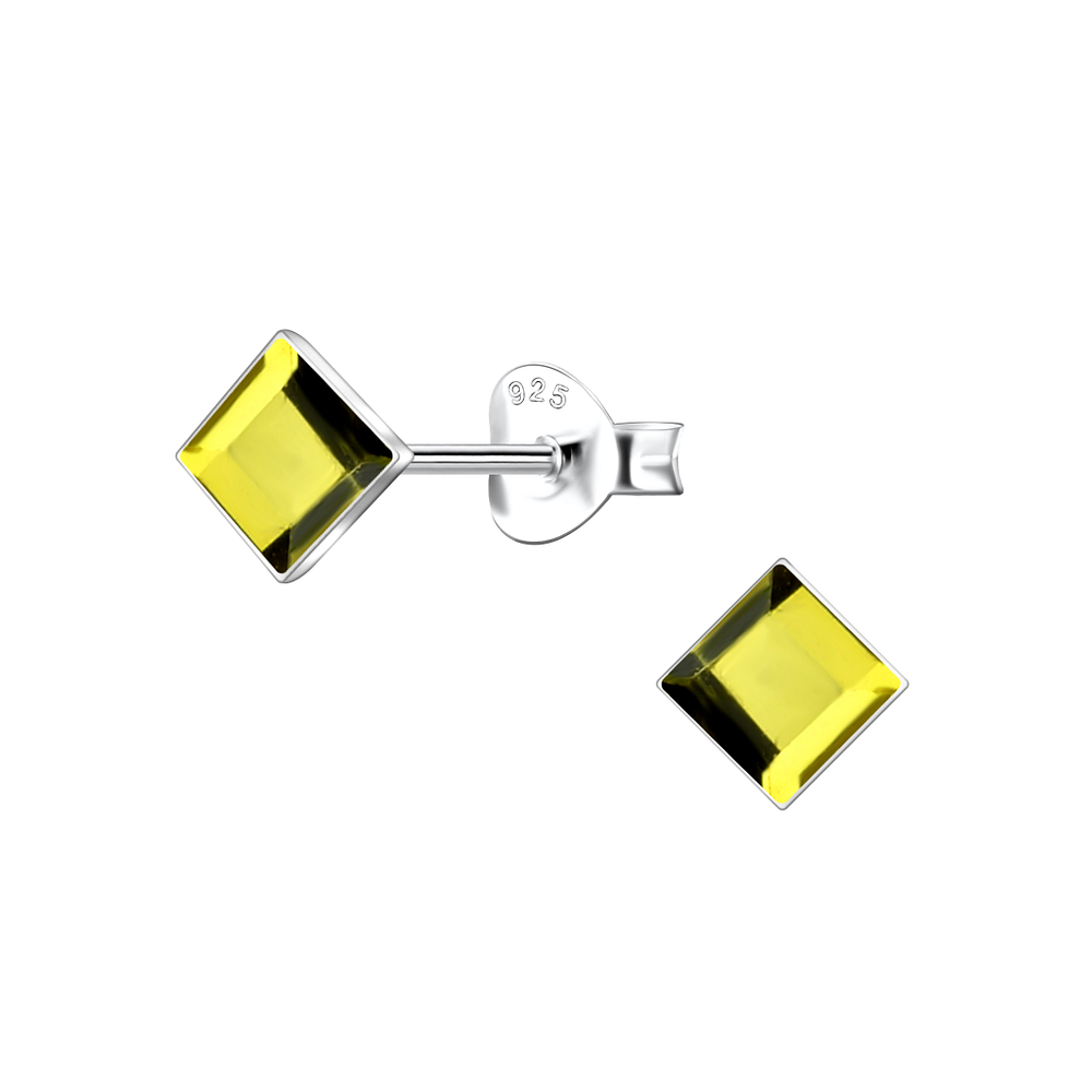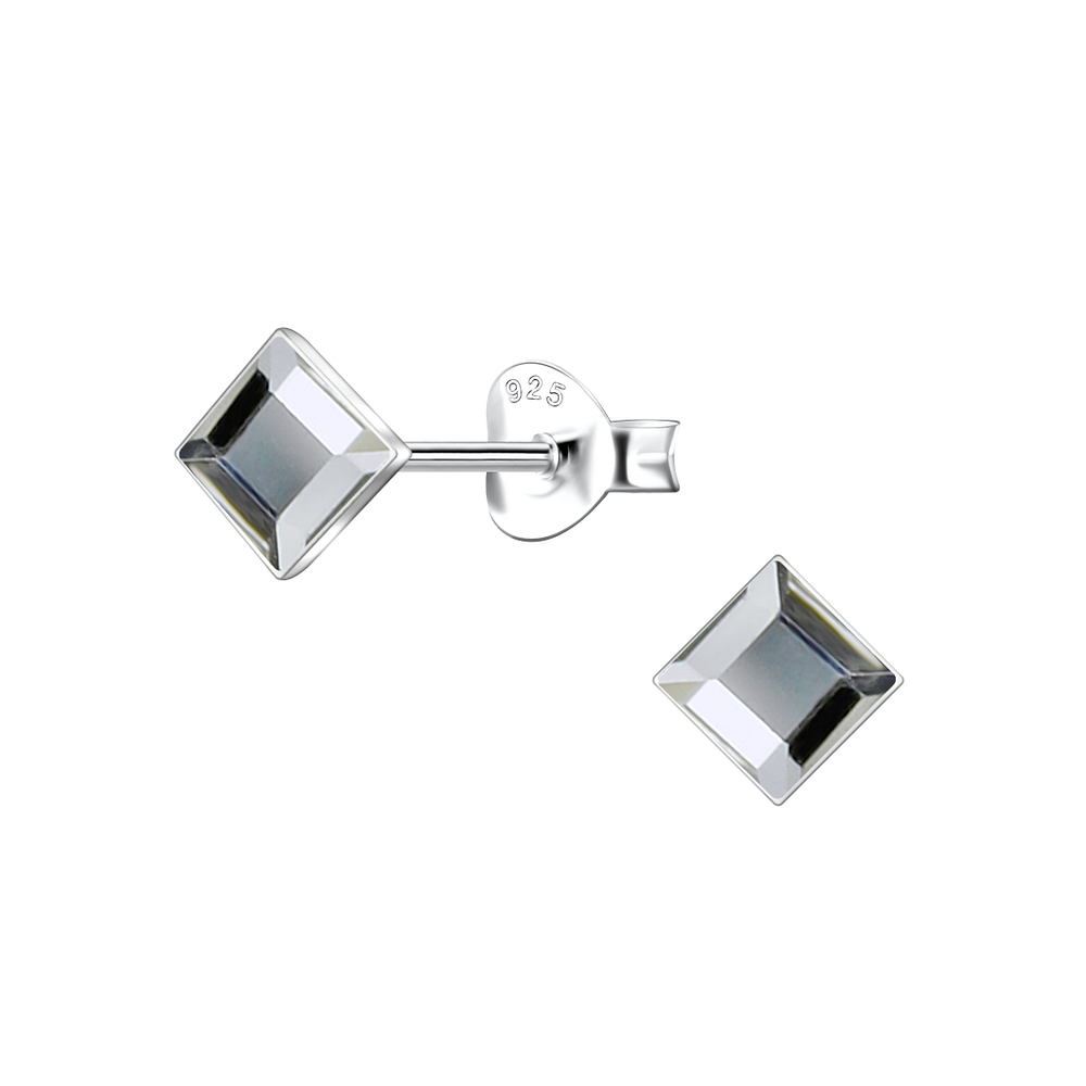 4mm Square Crystal Sterling Silver Ear Studs – JD24735