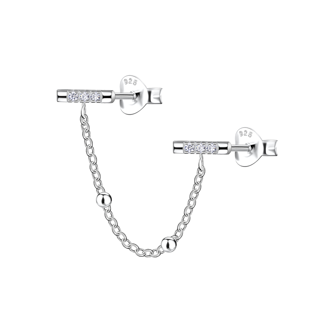 Sterling Silver Bar Double Ear Studs with Chain – JD22488