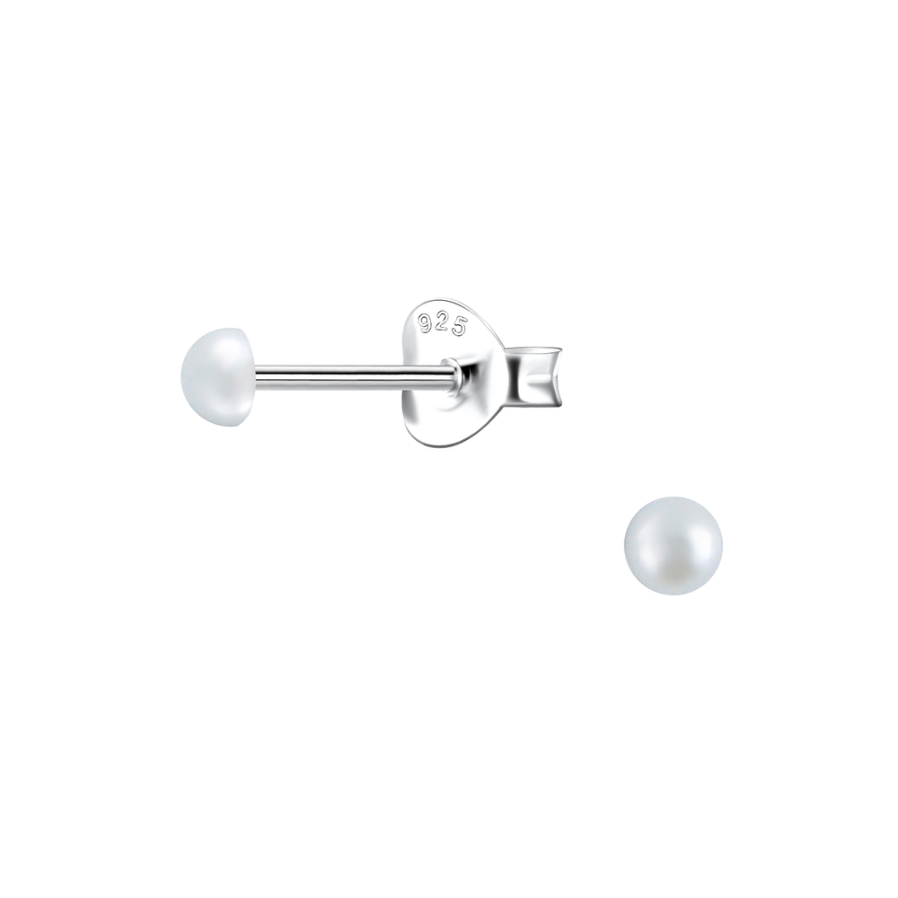 Sterling Silver Ear Studs with 3mm Semi Circle Pearl – JD23759