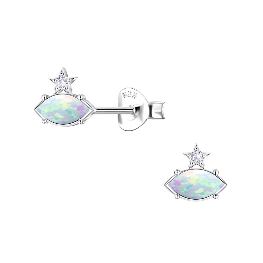 Sterling Silver Geometric Opal Ear Studs – JD23668