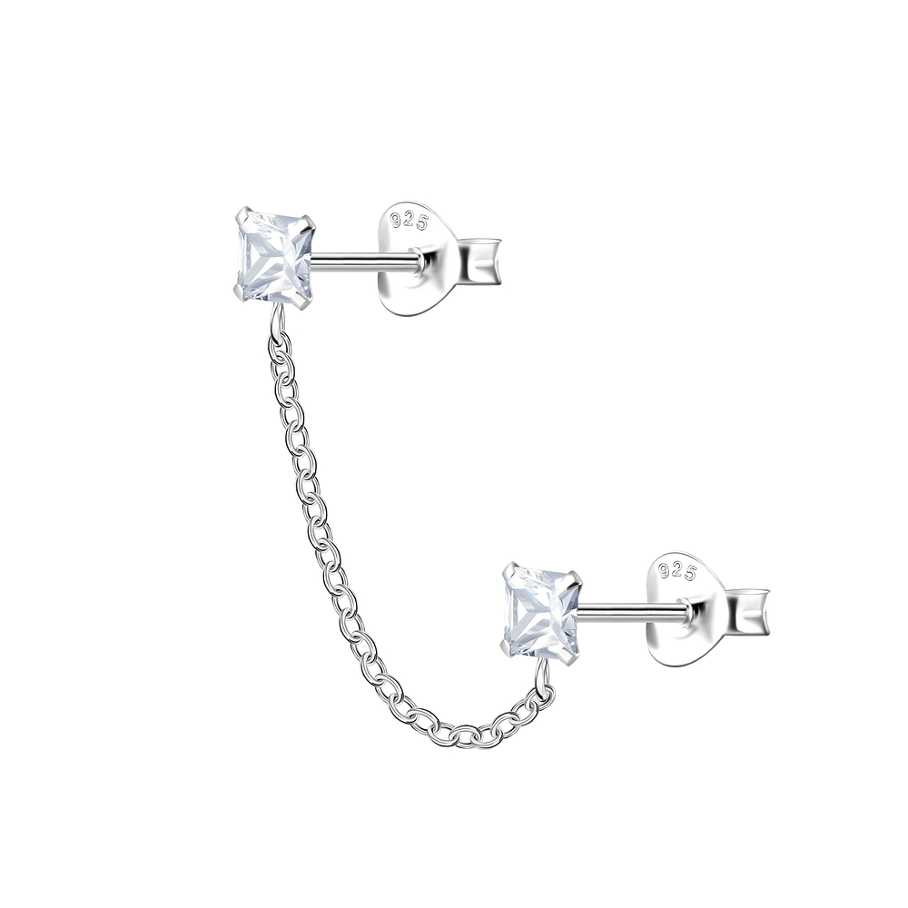 Sterling Silver Square Double Ear Studs with Chain – JD22472