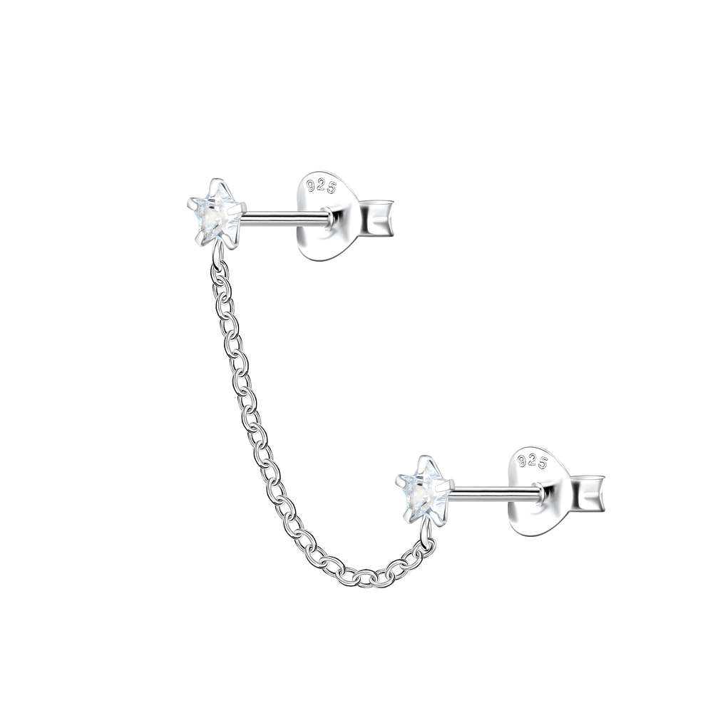 Sterling Silver Star Double Ear Studs with Chain – JD22471