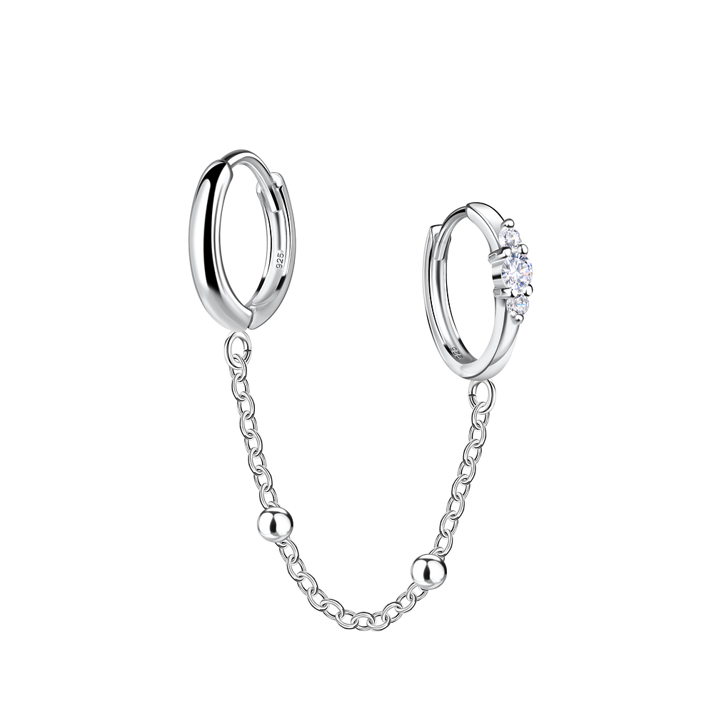Sterling Silver Double Huggie Earrings with Chain – JD22595