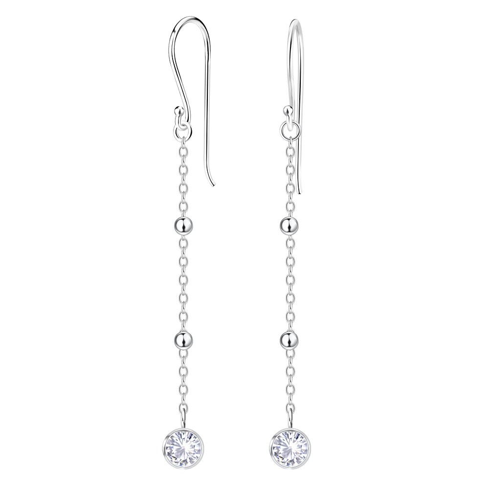Sterling Silver Satellite Chain with Single Stone Earrings – JD25135