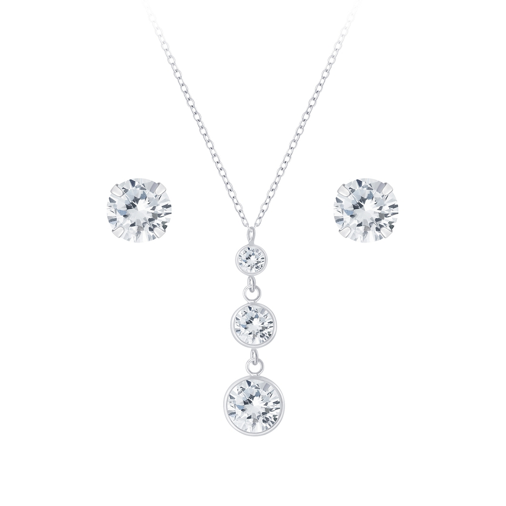 Sterling Silver Sparkling Necklace and Ear Studs Set – JD7727