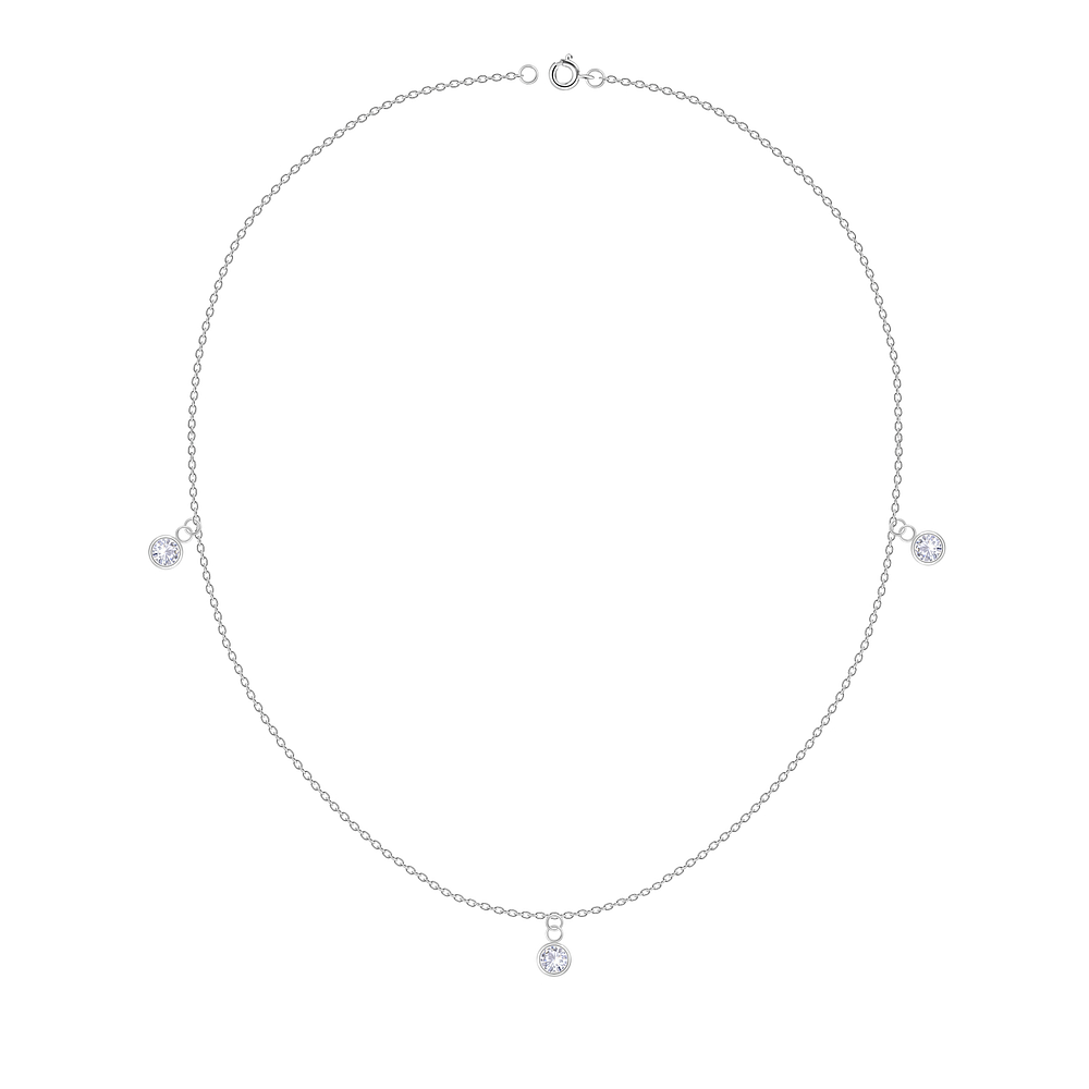 Sterling Silver Necklace with 3 Hanging Round Cubic Zirconia – JD24546