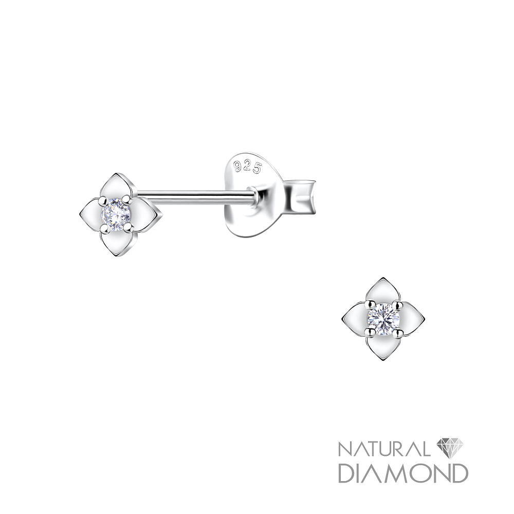 Sterling Silver Flower Ear Studs With Diamond – JD22672