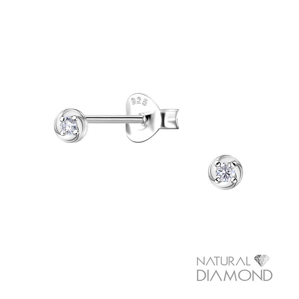 Sterling Silver Twisted Round Ear Studs With Natural Diamond – JD22666