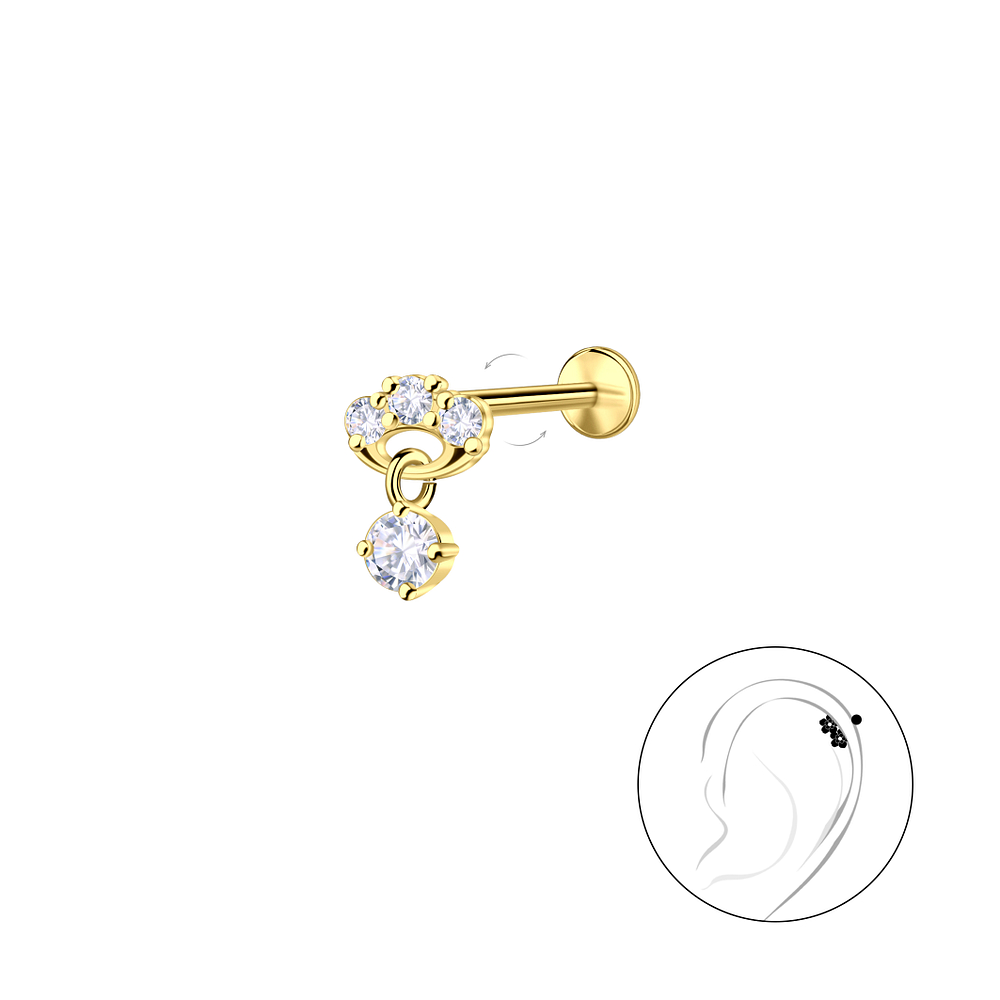 Sterling Silver Geometric with Hanging Stone with Titanium Labret – JD23972